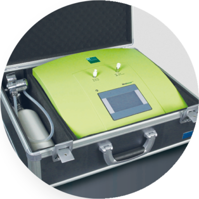 Easy to transport, great for stationary and outpatient use. The Medozon mini is suitable for syringe withdrawal, bag gassing, water ozonation (with Aquazon) and intestinal insufflation.